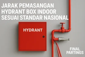 Jarak antar hydrant box indoor idealnya tidak melebihi 60 meter agar area proteksi saling menutupi.